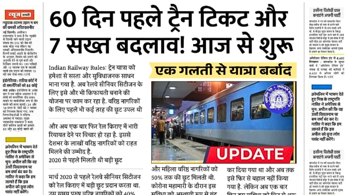 आज से बदला टिकट बुकिंग का नियम! 60 दिन की नई लिमिट और 7 बड़े बदलाव, एक गलती पड़ेगी भारी | Train Ticket Timing Changed